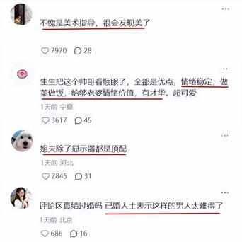 网友们彻底懂了:“情绪稳定的老公才是婚姻顶配,比帅哥靠谱多了!”“姐夫除了显示器都是顶配!”“已婚人士表示这样的男人太难得了。”